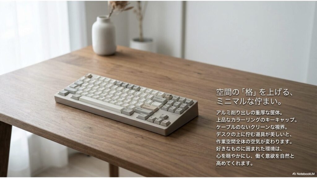 デスクの上に佇むキーボードが美しいと、それだけで作業空間の「格」が上がります。