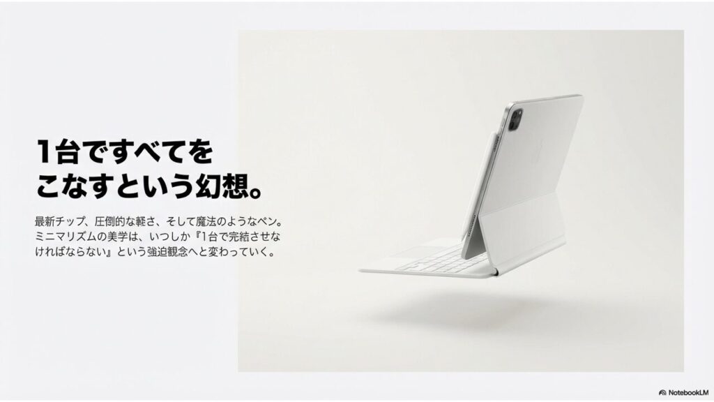 ミニマリズムの思想が、いつの間にか「1台で全部やらなきゃ」という強迫観念に変わっていることがあります。