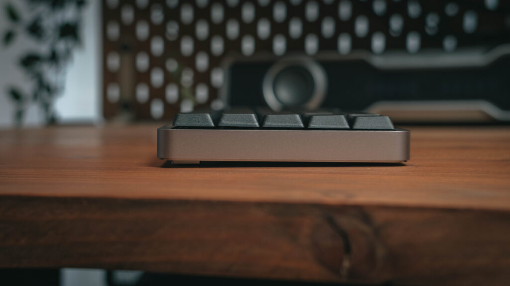 高級感あふれるメタルボディが非常に魅力的です。黒色キーキャップとのコントラストも感じられて、非常に良いデザインですね。