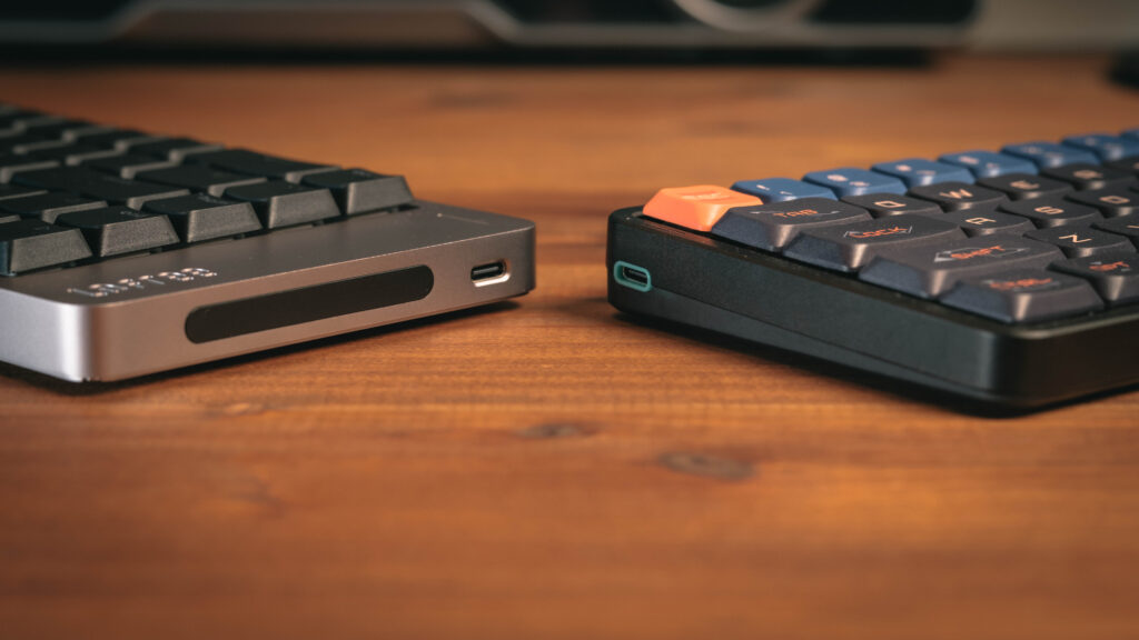 ちなみに、Air60 V2も側面にUSBポートがありますが、左側にあるのでマウスの邪魔にはなりません。せめて左側にしてほしかったです。