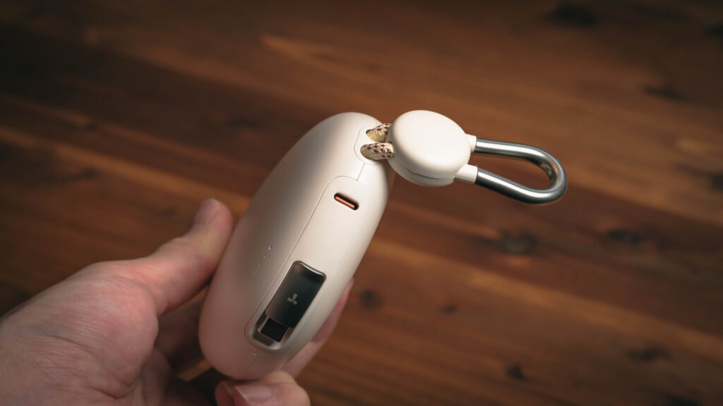 70cmまで伸びる巻取り式ケーブルを内蔵し、出力は35W。さらに容量は10000mAhと、日常的に使いやすいスペックです。それでいて、カラビナを搭載しているため、リュックなどに取り付けていつでもケーブルを取り出せるのが非常に便利。そんなFlexLine Pebbleを使ってみたので、レビューしていこうと思います。