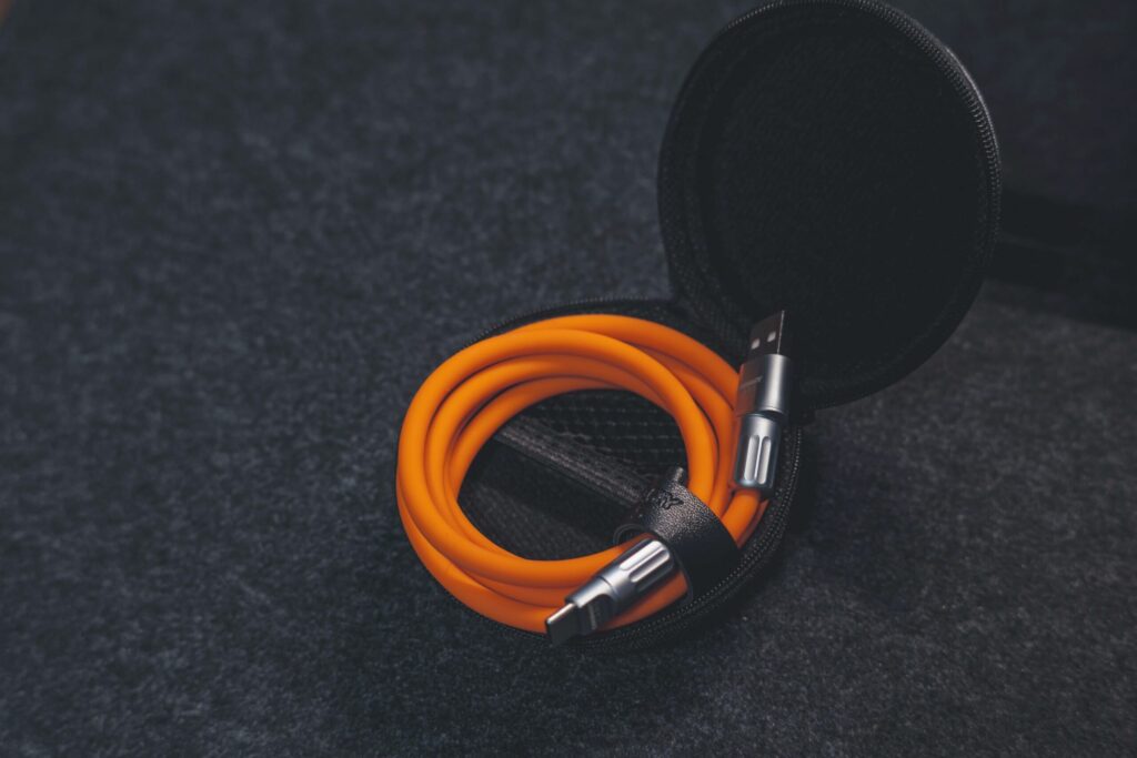 持ち運んで使うために購入したType-Cケーブルです。カラーはオレンジ以外にブラックとホワイトもあります。